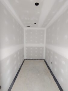 This customer originally hired us to do the plumbing rough-in in the basement. After seeing our work, he was extremely impressed and after discussing our full range of services, he hired us to complete the drywall, flooring, bathroom tile, and trim work as well. Please take a look at some of our finished drywall work!