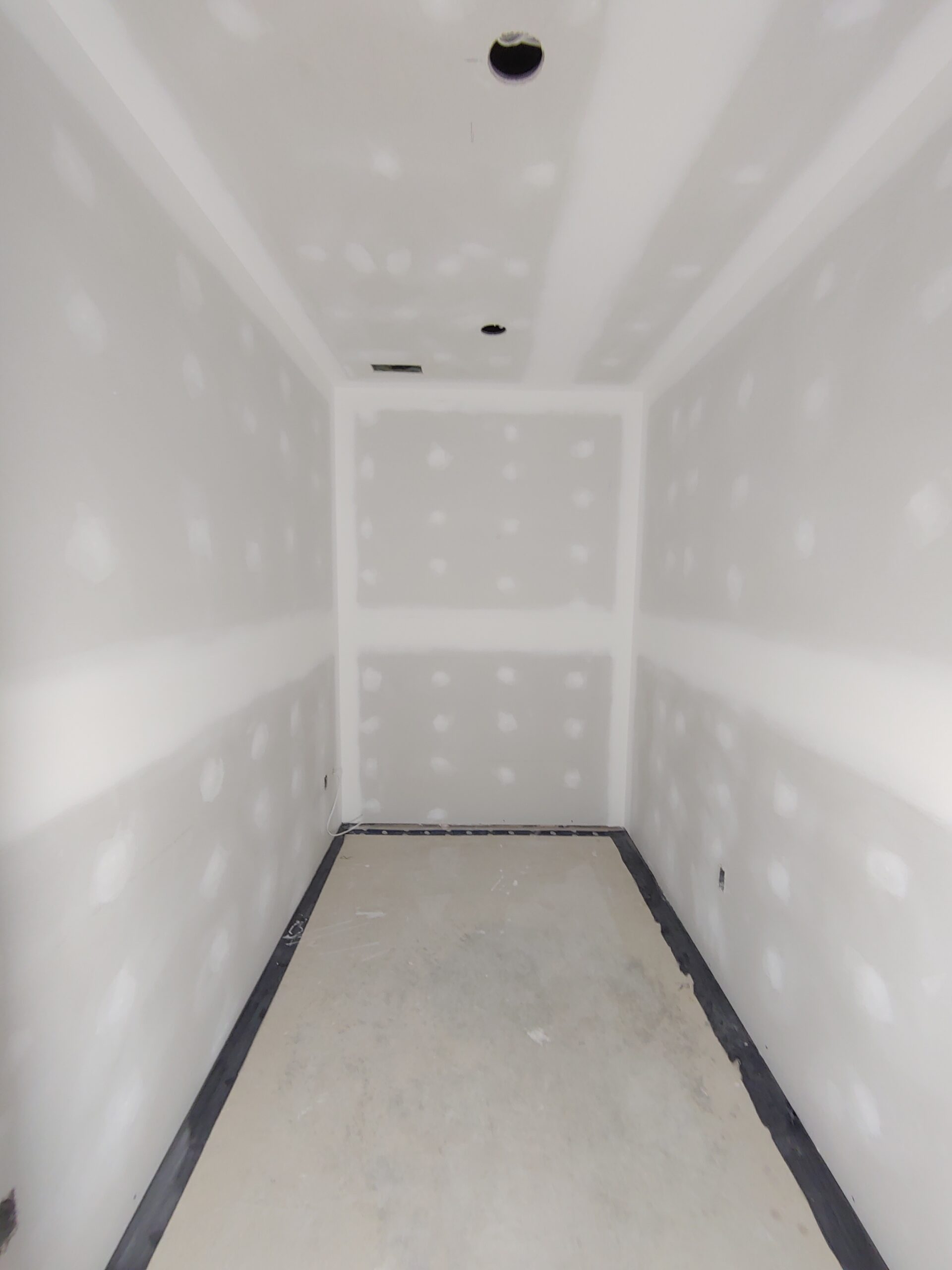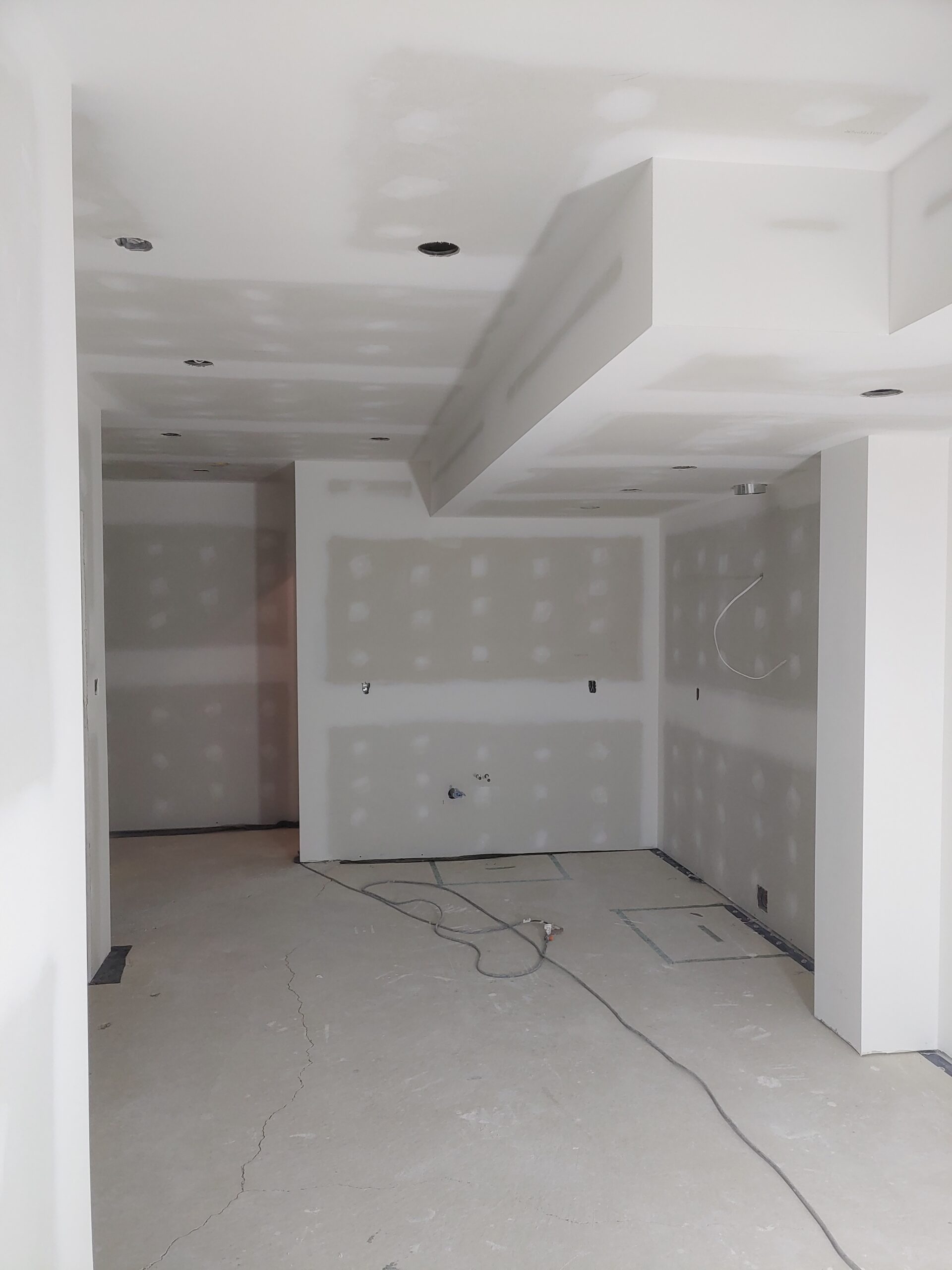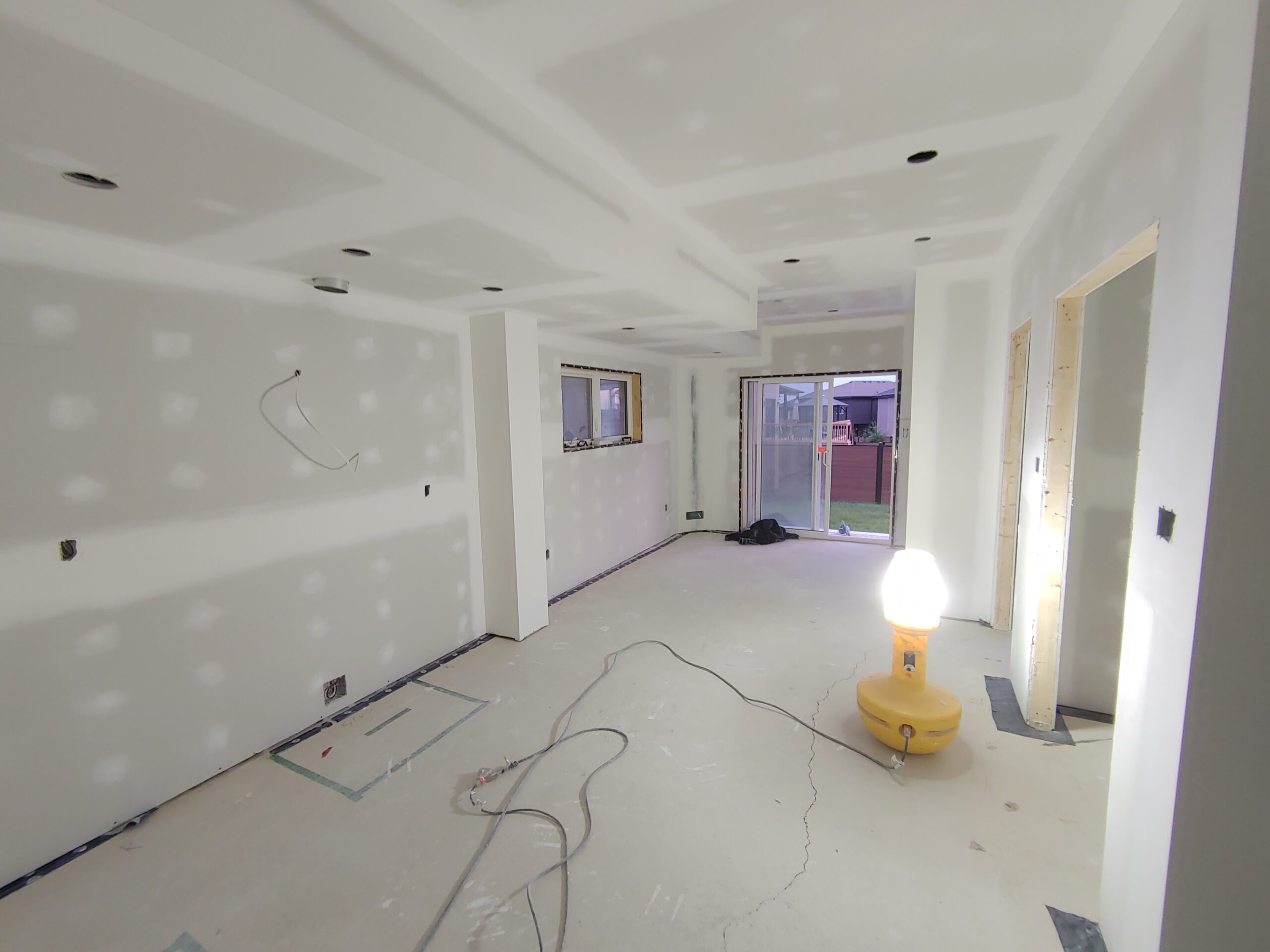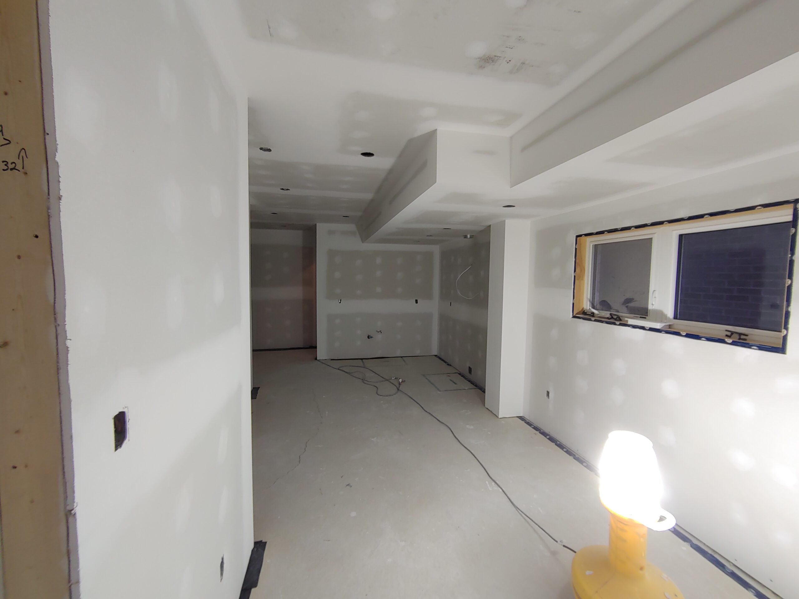This customer originally hired us to do the plumbing rough-in in the basement. After seeing our work, he was extremely impressed and after discussing our full range of services, he hired us to complete the drywall, flooring, bathroom tile, and trim work as well. Please take a look at some of our finished drywall work!