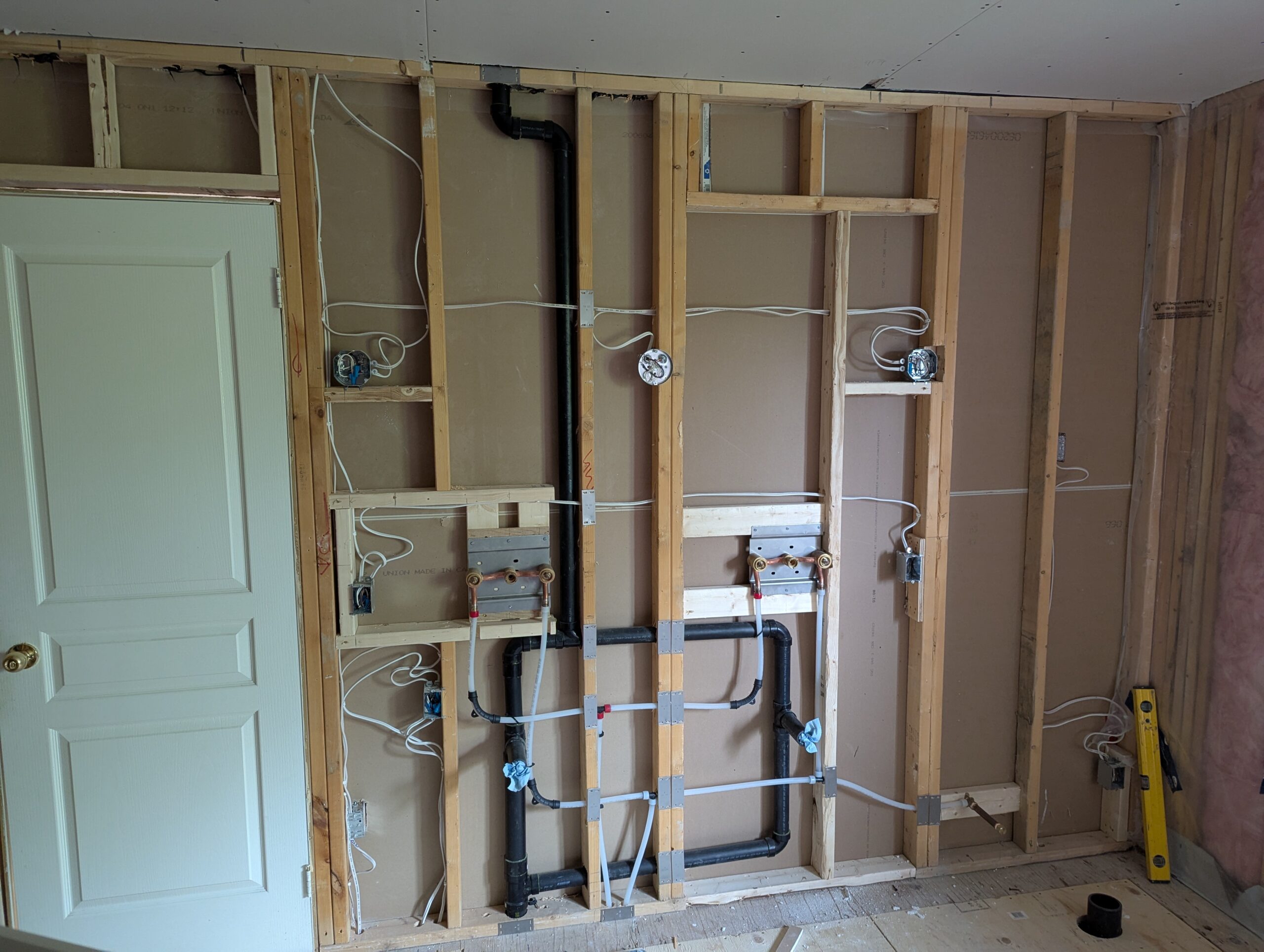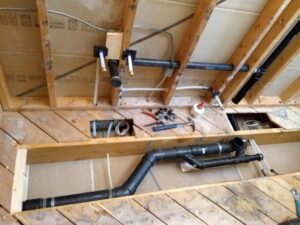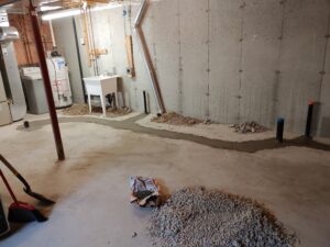 Basement apartment underground plumbing rough-in completed with poured concrete